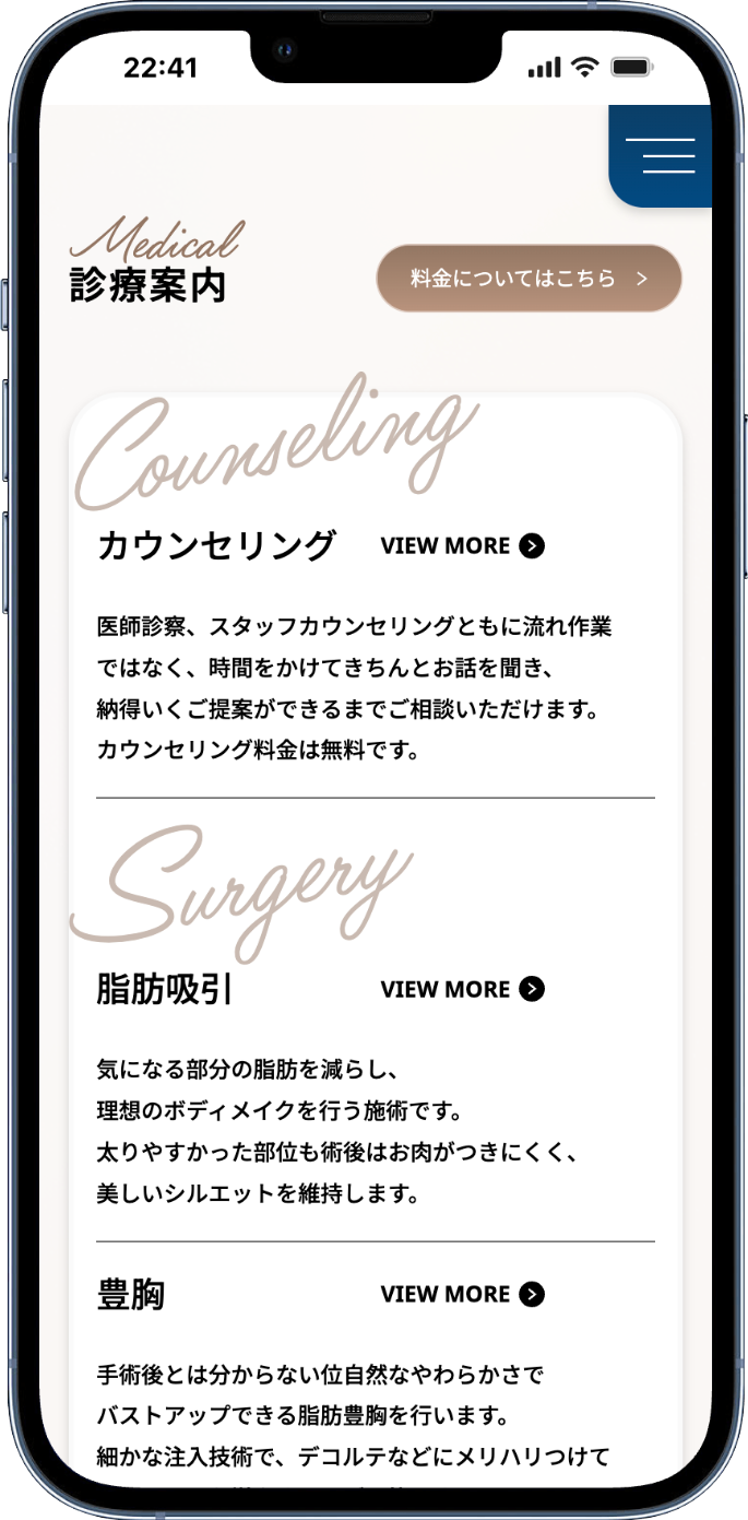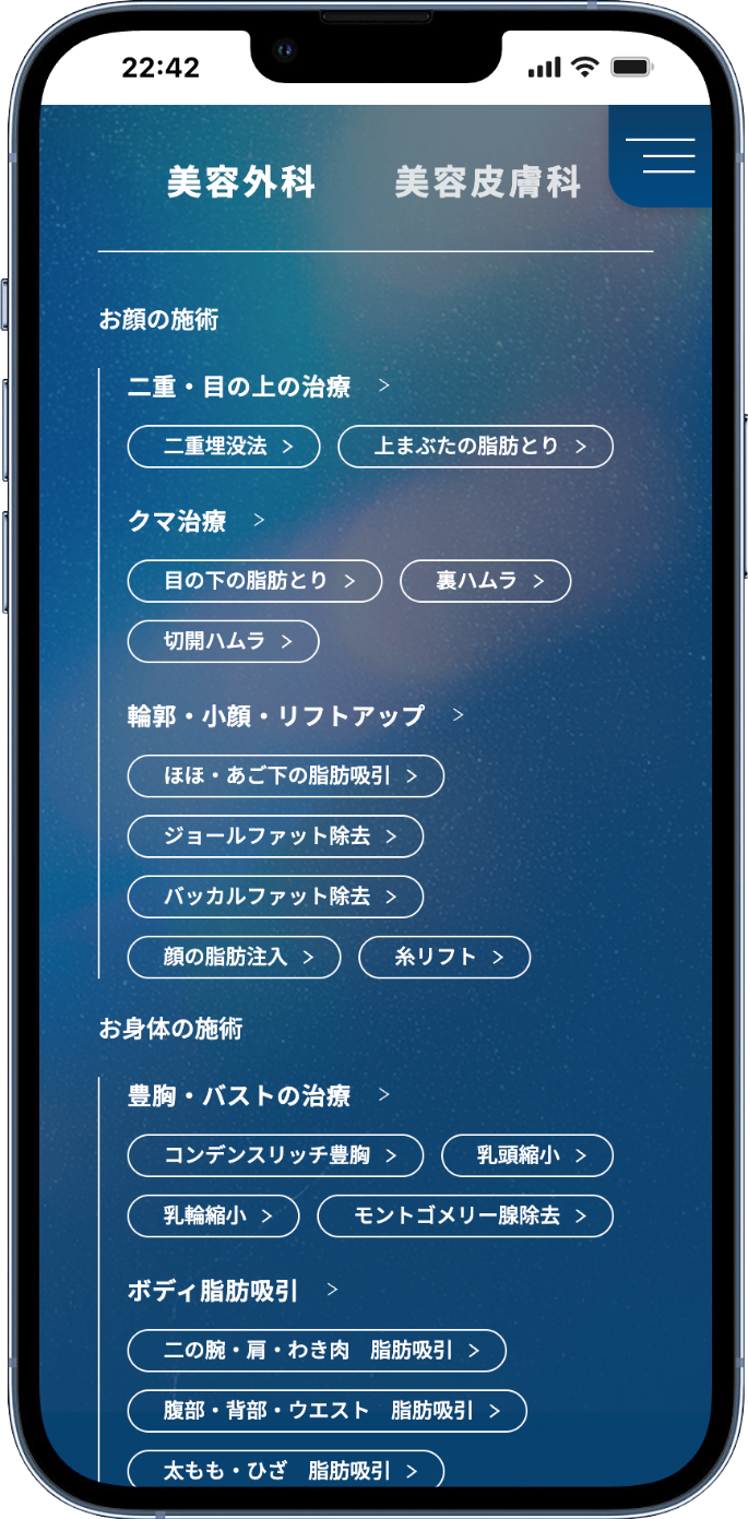 脂肪吸引や脂肪注入、豊胸、クマ治療へと応用し、様々な側面から患者様の求める“美”を追求いたします。